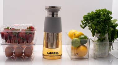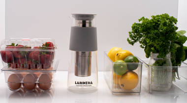 Lardera Cold Brew Pitcher, which is made from heat-resistant glass that rapidly drops the temperature in a matter of minutes. As always, check what material your brewing vessel is made of before attempting this method and ensure that it offers heat-resistant properties.